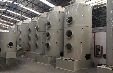 噴淋塔除臭設備:廢氣則由塔體(逆向流)達到氣液接觸之目的。此處理方可冷卻廢氣、調理氣體及去除顆粒,再經過除霧段處理后,排入大氣中。